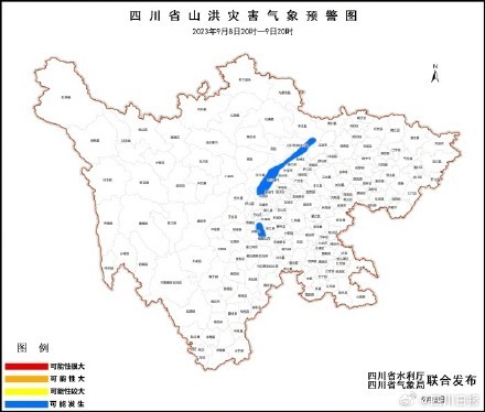 9月8日,四川省水利厅联合四川省气象局发布山洪灾害蓝色预警。预警显示,2023年9月8日20时至9日20时,眉山市洪雅,乐山市夹江、峨眉山,成都市大邑、都江堰、彭州、崇州,绵阳市安州、北川、平武,阿坝州汶川,德阳市什邡、绵竹13个县(市、区)可能发生山洪灾害。(四川水利)