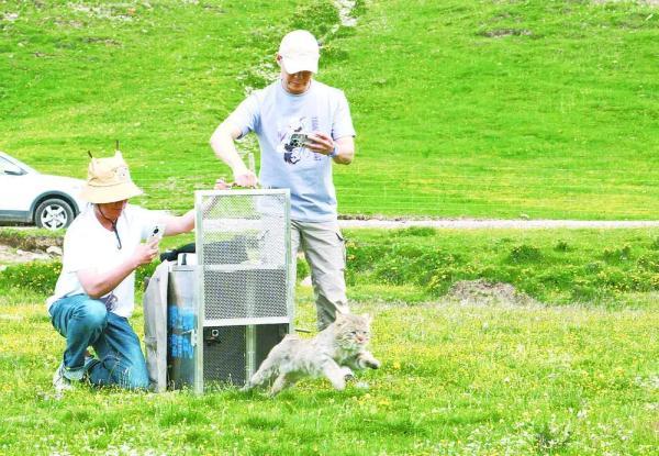 “7月23日,经过多轮讨论,救护中心联合中国农业大学动物医学院副院长金艺鹏教授团队为该荒漠猫进行体检后,为其佩戴了卫星定位项圈后进行放归。因附近有山地、河谷、草原和灌丛等多种生境,有大量高原鼠兔等小型兽类活动,符合荒漠猫生境要求,满足放归条件,此举可以研究草原地区的荒漠猫活动规律。”
