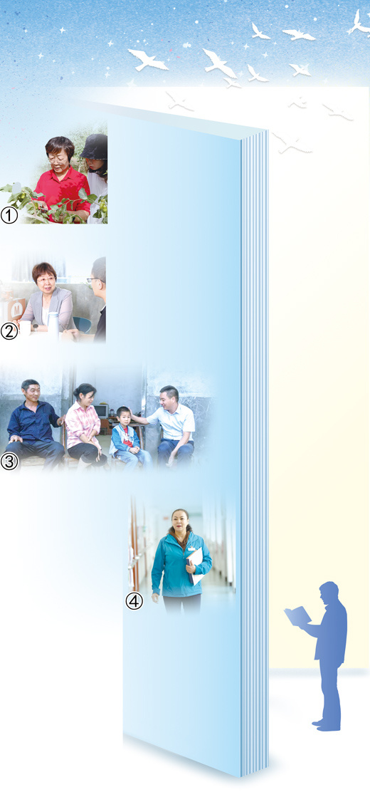 图①:吴翠云(左一)在塔里木大学枣种质资源圃指导学生。 受访者供图 图②:眭碧霞(左一)指导学生参加竞赛答辩。 受访者供图 图③:彭玉生(右一)到学生家中走访。 黄士峰摄(人民视觉) 图④:鲁毛才让准备去上课。 受访者供图 |