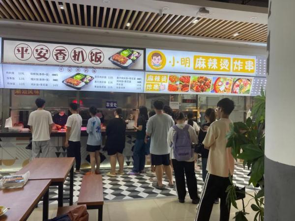 饭堂内其他六间档口,也以售卖各式快餐为主,价格从13元至16元不等。记者7日上午11点半在该饭堂内看到,其他档口还没有多少顾客,已有11位学生在“平安香扒饭”前排队取餐。