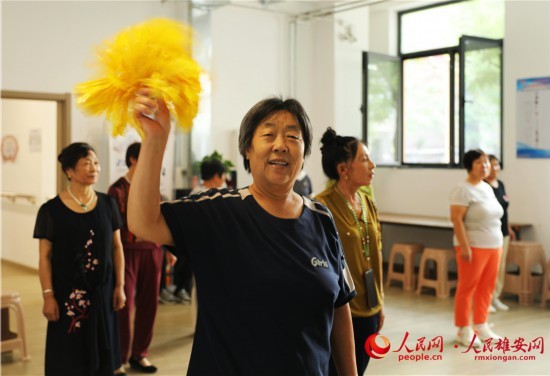 南文社区养老驿站内前来练舞的老年人。 人民网记者李雪晴摄