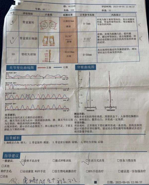 “看到这么贵的价格,我还跟对方说了一下。”袁女士回忆,对方接着说:“你做了就知道,我们这个效果绝对是非常好的”。做完三次骨盆修复后,9月5日,她前往医院进行检查,“我老婆还是显示有骨盆前倾、顺旋。”袁女士的丈夫汪先生说。