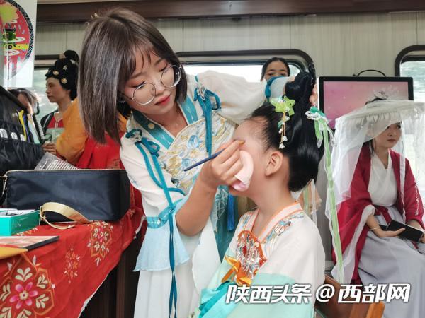 为了让游客能够更好地感受汉服之美,本次旅游专列除设置汉服、甲胄展示区外,创造性地设立了专门的化妆区,配备专业化妆师,为游客打造出最完美的唐代形象,体验从未有过的“上车变身,下车穿越”的独特旅行感受。