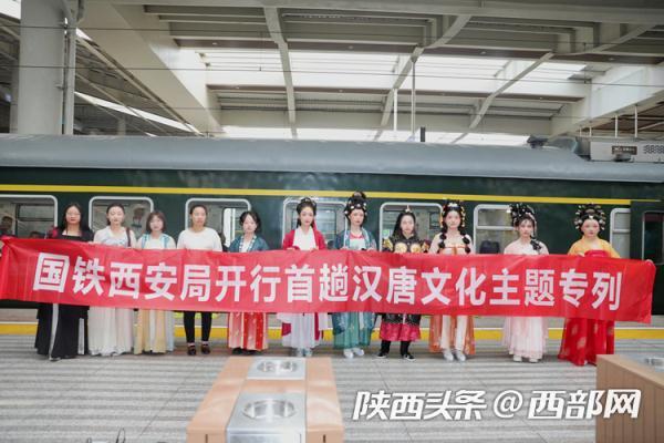 9月9日8时50分,满载游客的Y592次定制旅游专列从西安站缓缓驶出,前往潼关,这标志着陕西首趟汉唐文化主题旅游专列正式开行。本趟旅游专列由国铁西安局、有何名唐唐文化体验馆、陕西省旅行社协会联合打造,以唐代服饰和传统文化为主创思想,将传统文化与旅游出行结合起来,将列车变成一个移动的文化载体,为旅游市场注入新的活力。