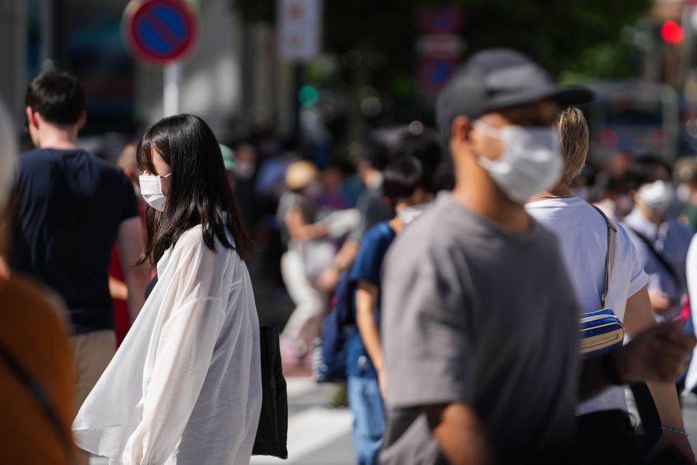 2022年7月29日,戴口罩的行人走在日本东京涩谷街头。新华社记者张笑宇摄