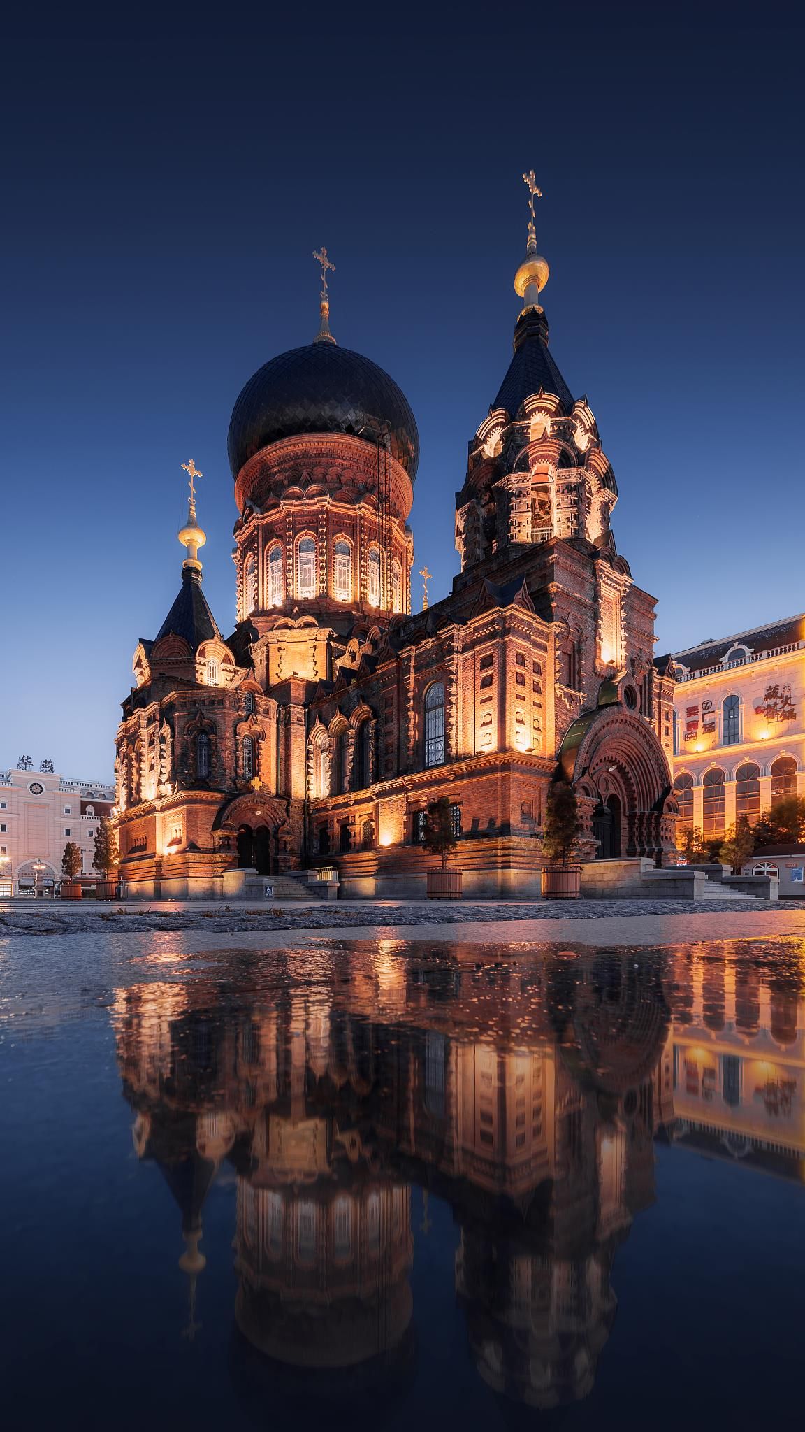 △索菲亚教堂是一座拜占庭式东正教教堂,现为哈尔滨建筑博物馆所在地。