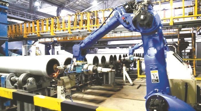 “项目的完成得益于公司的集成智能化生产线,大量采用工业机器人,作业效率大大提升。”黄石新兴管业党委书记、董事长王峰说,喷涂机器人作业,涂层厚度、表观一致性非常好。目前新区人均劳动效率比老厂区提升了50%。