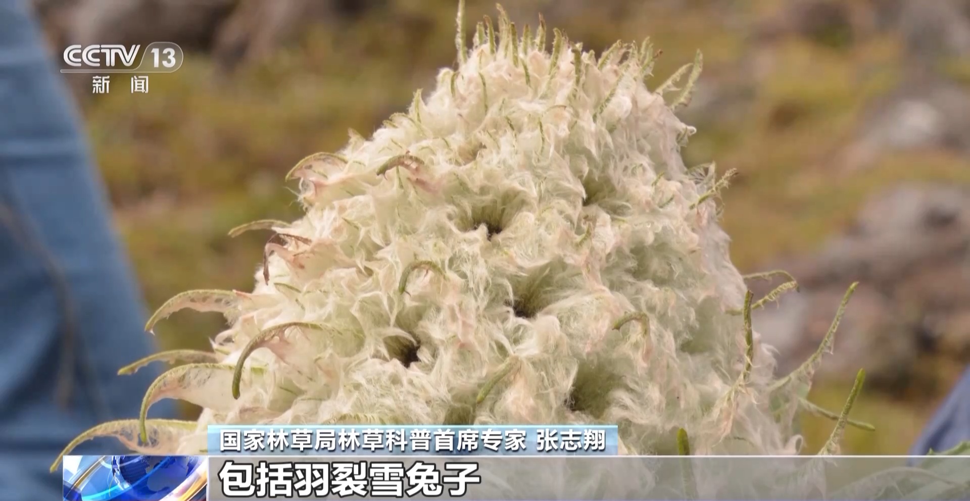 国家林草局林草科普首席专家 张志翔:再往上走,这一部分植被比较少,但是特有植物也非常多。 包括羽裂雪兔子,还有绵头雪兔子等。
