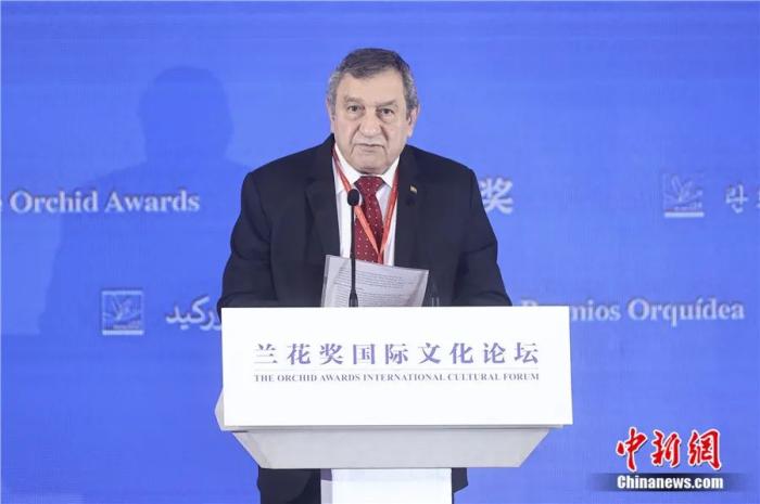 2023年9月8日,兰花奖国际文化论坛在北京举行,伊萨姆·沙拉夫作主题演讲。易海菲 摄