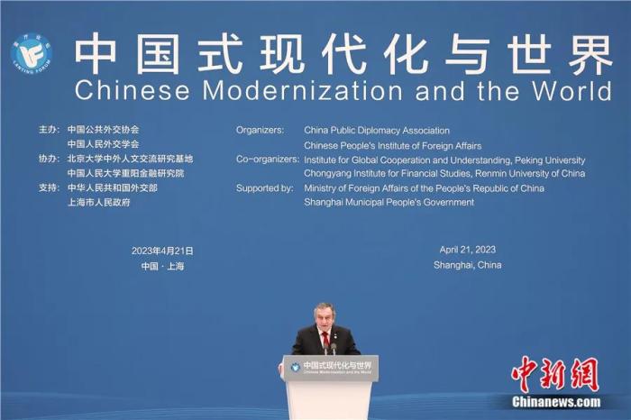 2023年4月21日,“中国式现代化与世界”蓝厅论坛在上海“世界会客厅”举办,沙拉夫出席论坛开幕式并致辞。殷立勤 摄