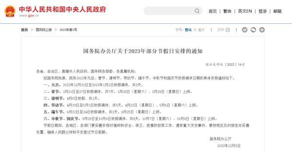 根据《国务院办公厅关于2023年部分节假日安排的通知》,