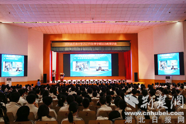 法治教育讲座面向该校全体高一年级新生和部分其余年级学生,共有700余名师生参加。沙洋水陆派出所民警从青少年防溺水、防范电信网络诈骗、交通安全、防校园欺凌等多个方面进行讲解,通过生动案例开展普法宣传和安全防范教育,告诫同学们法律不仅是道德的底线也是做人的处世规则,引导大家知法明理。