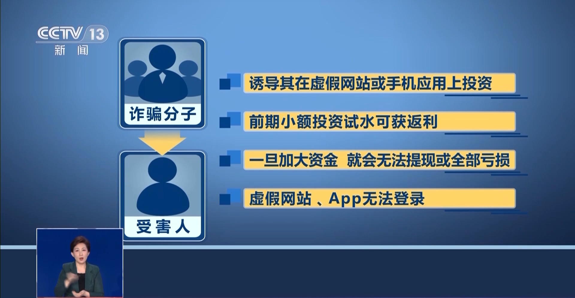 晋江市公安局副局长 蔡辉耀:犯罪分子都是利用一些正规的网站进行引流,把链接隐藏在这些正规网站里,诈骗的App都是套用我们国内的一些正规投资理财的App的名字,来进行诈骗。