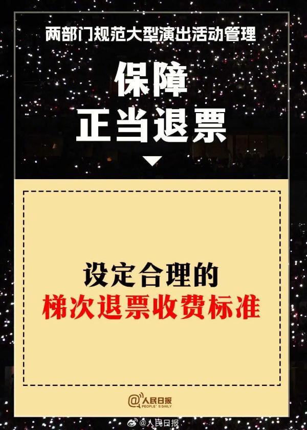 除此之外,通知也再次强调了强实名以及退票等准则,包括:“实行实名购票和实名入场制度,每场演出每个身份证件只能购买一张门票,购票人与入场人身份信息保持一致”“演出举办单位应当建立大型演出活动退票机制,设定合理的梯次退票收费标准,保障购票人的正当退票权利”等。