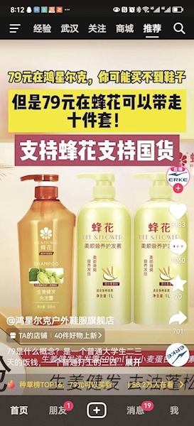 一派热闹氛围中,武汉市民李女士也被吸引,在直播间内逗留,“我来看看有什么能买”。李女士称,她本就是蜂花的忠实用户,此次国货品牌直播得热闹,价格又便宜,确实忍不住想捧个场。当被问及,跟风下单是否担心“踩雷”?李女士表示:“这么多年的老品牌,品质肯定有保障。”