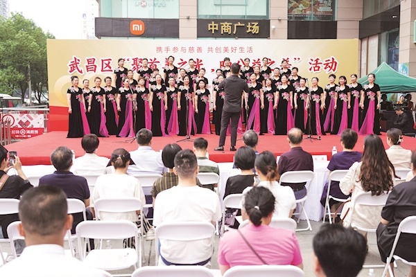 “助人为乐,积小善为大善,积善之家,必有余庆……”这首诗朗诵《爱的奉献·就在你我身边》赢得广场上市民的阵阵掌声。9月4日,2023年第八个“中华慈善日”主题宣传活动暨武昌区“聚首善之光,映公益之美”慈善公益行活动,在武昌中商广场举行。