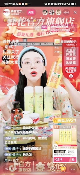 天津的张先生是蜂花的粉丝,他在蜂花的直播间和相关视频的评论区很是活跃。“积极参与其中,哪怕什么都不买,也是一种支持吧。”张先生说。他还借“蜂花捡破烂”这一热点话题,拍摄了一条视频,播放量超过300万。