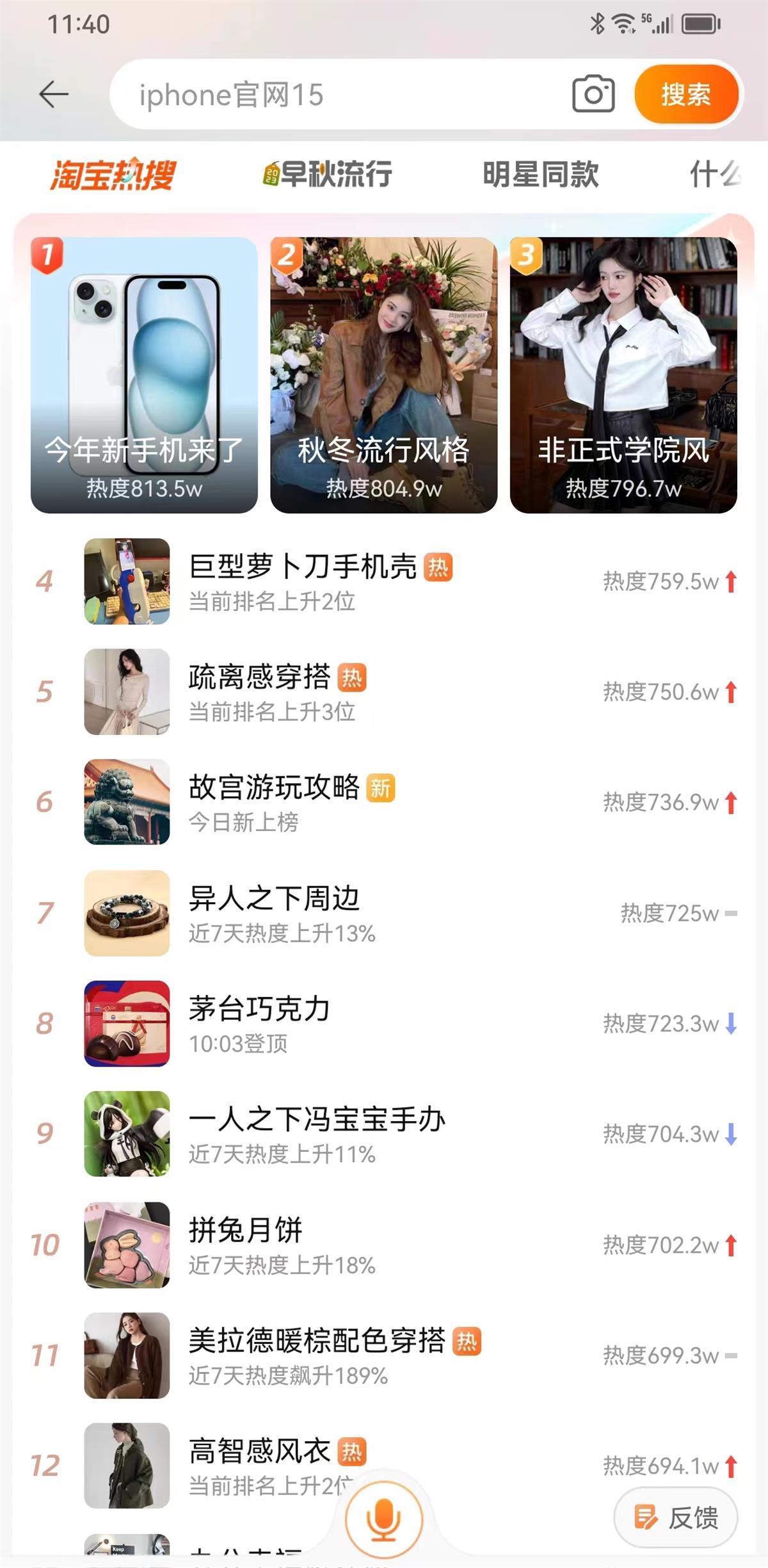 淘宝热搜榜“今年手机来了”话题热度位居榜单第一