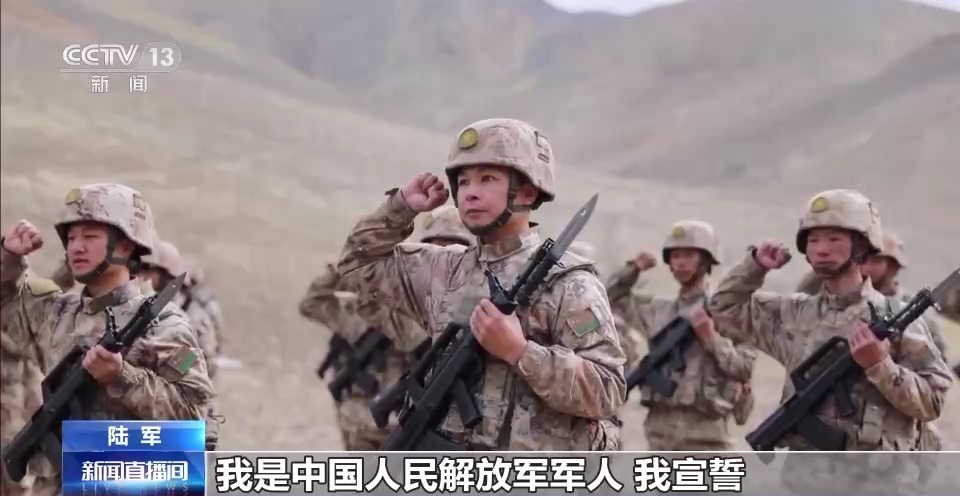 新疆军区某合成团的官兵们面对鲜艳的军旗庄严宣誓,重温军人誓词,一句句铿锵有力的承诺在每名官兵耳边久久回荡。