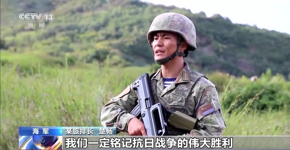 海军某旅排长 楚畅:作为新时代革命军人,我们一定铭记抗日战争的伟大胜利,继承和发扬好抗战精神,不断夯实实战化训练思想根基,时刻保持箭在弦上的高度戒备状态,确保我们随时能够拉得出、上得去、打得赢。