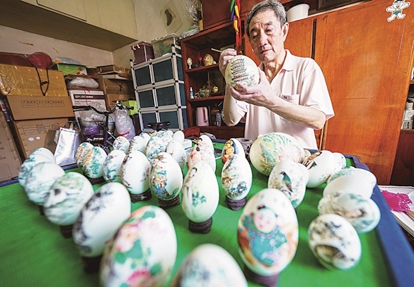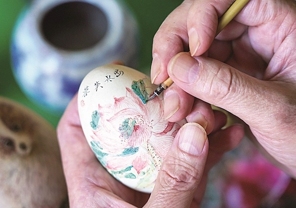 一天,正在家中画画的陈国辉瞥见桌边一枚鸡蛋,突然灵光一闪:“何不在蛋壳上作画试试?”