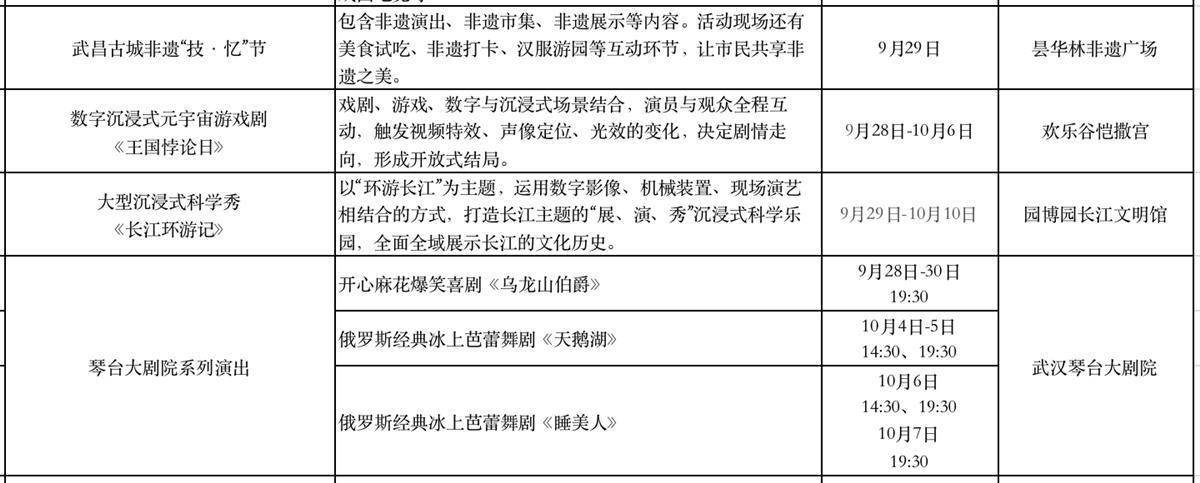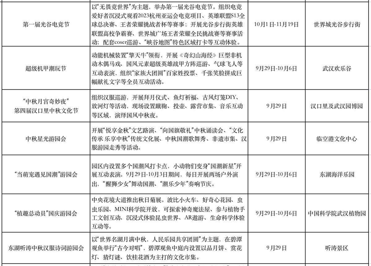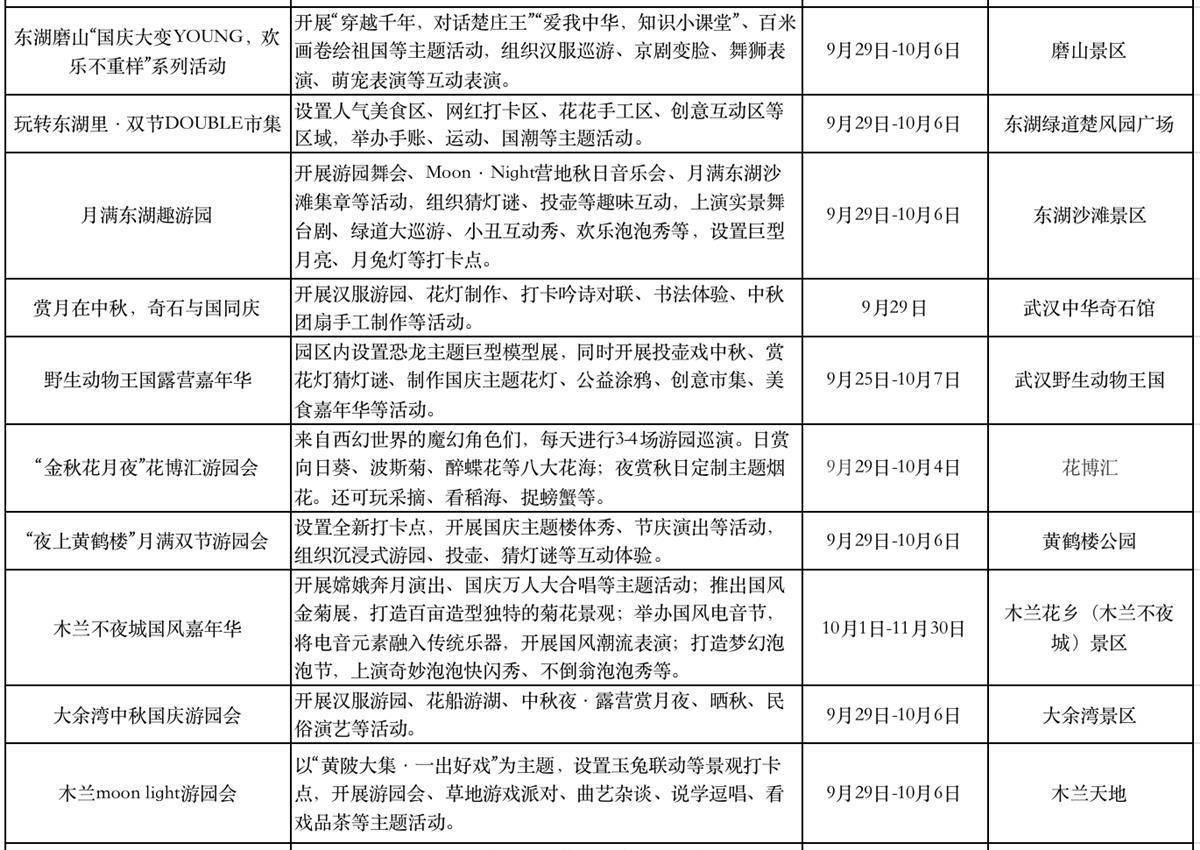 为了满足广大市民和游客假期出游需求,促进武汉文旅市场持续繁荣,今年中秋国庆假期,武汉市以“月满江城 祝福祖国”为主题,推出四个板块98项文化旅游活动。
