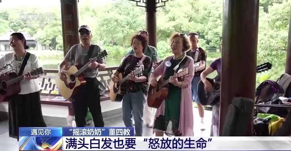 董四教奶奶,是杭州第19届亚运会火炬传递绍兴站的第71棒火炬手。还有4个月,董奶奶就年满80周岁了。董奶奶有一个很酷的称号——“摇滚奶奶”。因为她是从64岁开始学吉他、组建摇滚乐队。年过花甲才开启了她的音乐人生。眼下,杭州第19届亚运会即将举行,董奶奶的乐队,早在几个月前就排练起了亚运歌曲,他们希望用音乐的热情为家门口的亚运会出把力。