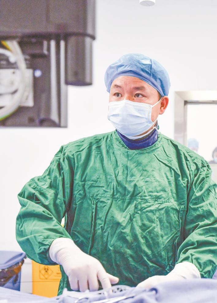 家属非常配合,一场与“死神”赛跑的生命争夺战开始。由于介入手术过程中医生要暴露在X光辐射环境中,无影灯下,张细六穿着十多公斤重的铅衣上手术台,小心地从患者大腿根部穿刺、置入血管鞘,把导管送到大脑深处堵塞的血管。
