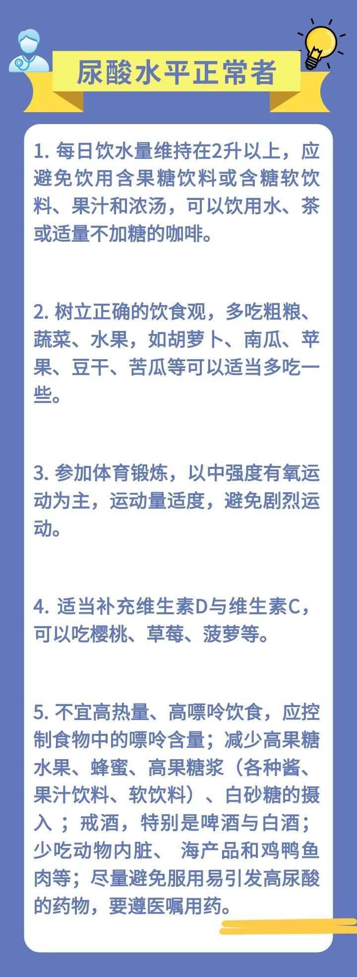 人体内大约有80%的嘌呤是内源性的,外源性嘌呤主要来自于我们日常的食物摄取,占总嘌呤的20%。对于尿酸水平正常者和已经处于高尿酸水平的人来说,可以参考以下饮食注意事项。