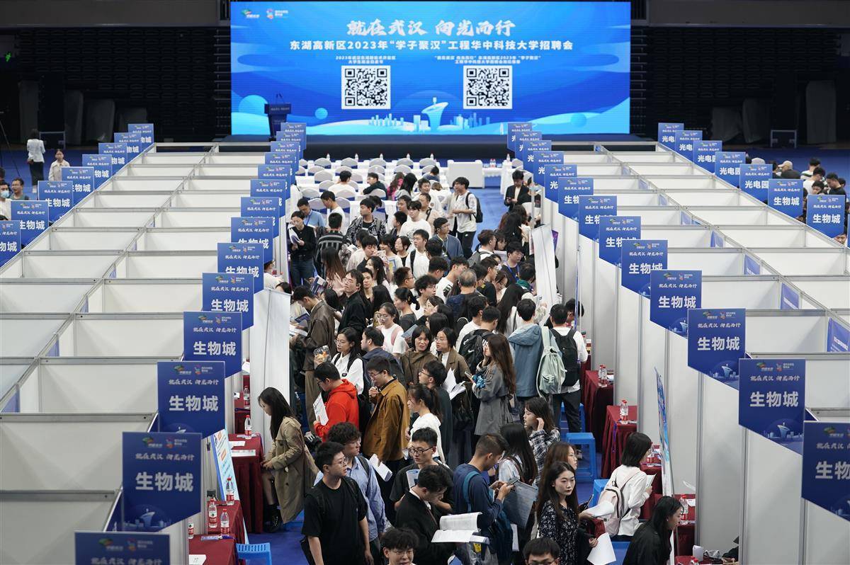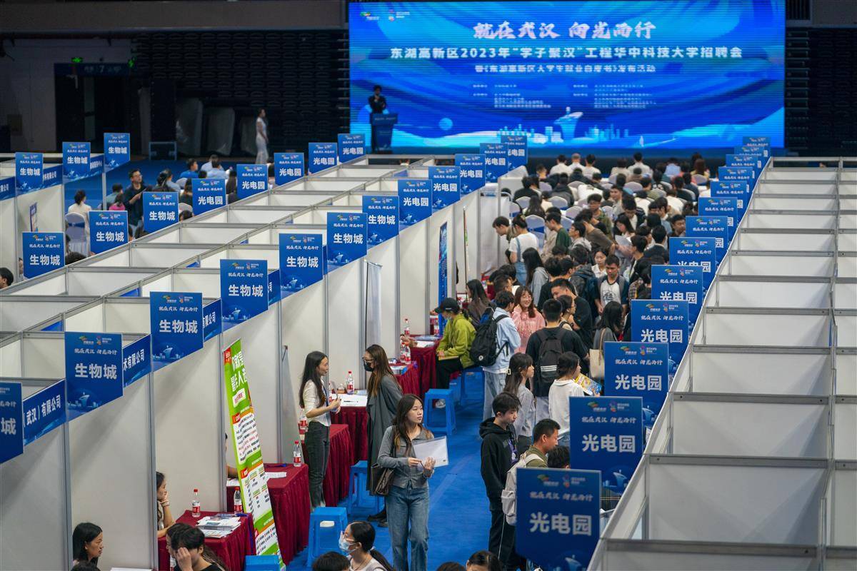 9月22日,华中科技大学光谷体育馆,每家招聘单位的展位前人头攒动。当日,武汉东湖高新区2023年“学子聚汉”工程招聘会启动,同时发布了《东湖高新区大学生就业白皮书》。据悉,此次招聘,来自光谷的近200家重点企业现场提供招聘岗位近万个,来自华中科技大学、华中农业大学、中国科学院大学、西安邮电大学等10余所高校4200余名学生进场求职。2017年以来,东湖高新区已吸引超60万大学生就业创业,常住人口118.38万人,平均年龄约32岁,成为我国创新活力最强、经济增长最快的高新区之一。
