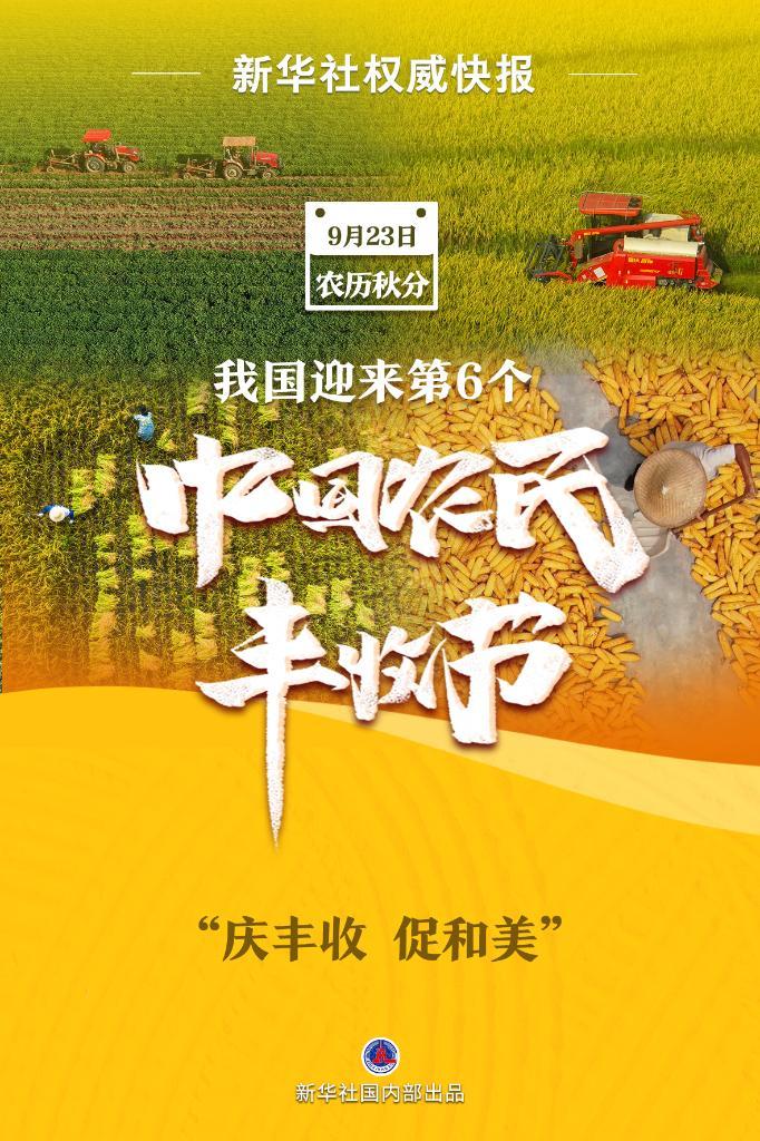今年9月23日,我国迎来第6个中国农民丰收节。全国主场活动在安徽芜湖举办,将组织开展群众联欢、全国农业科技装备成果展、全国农民体育健身大赛、中华农耕文化展等10项活动。