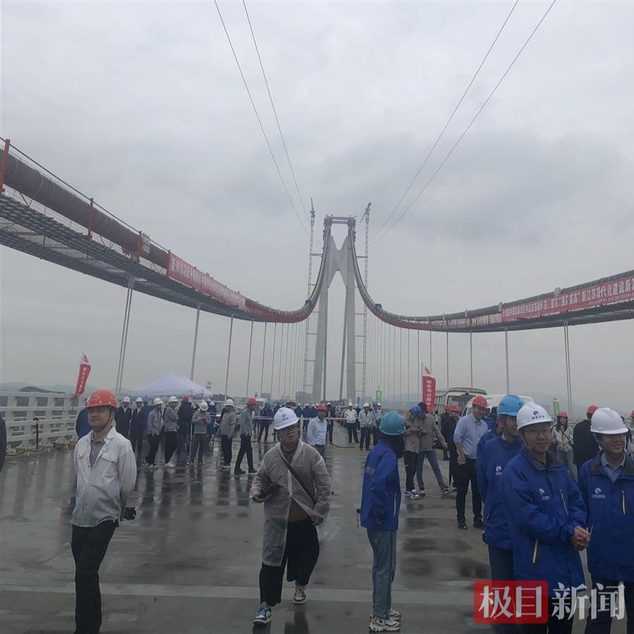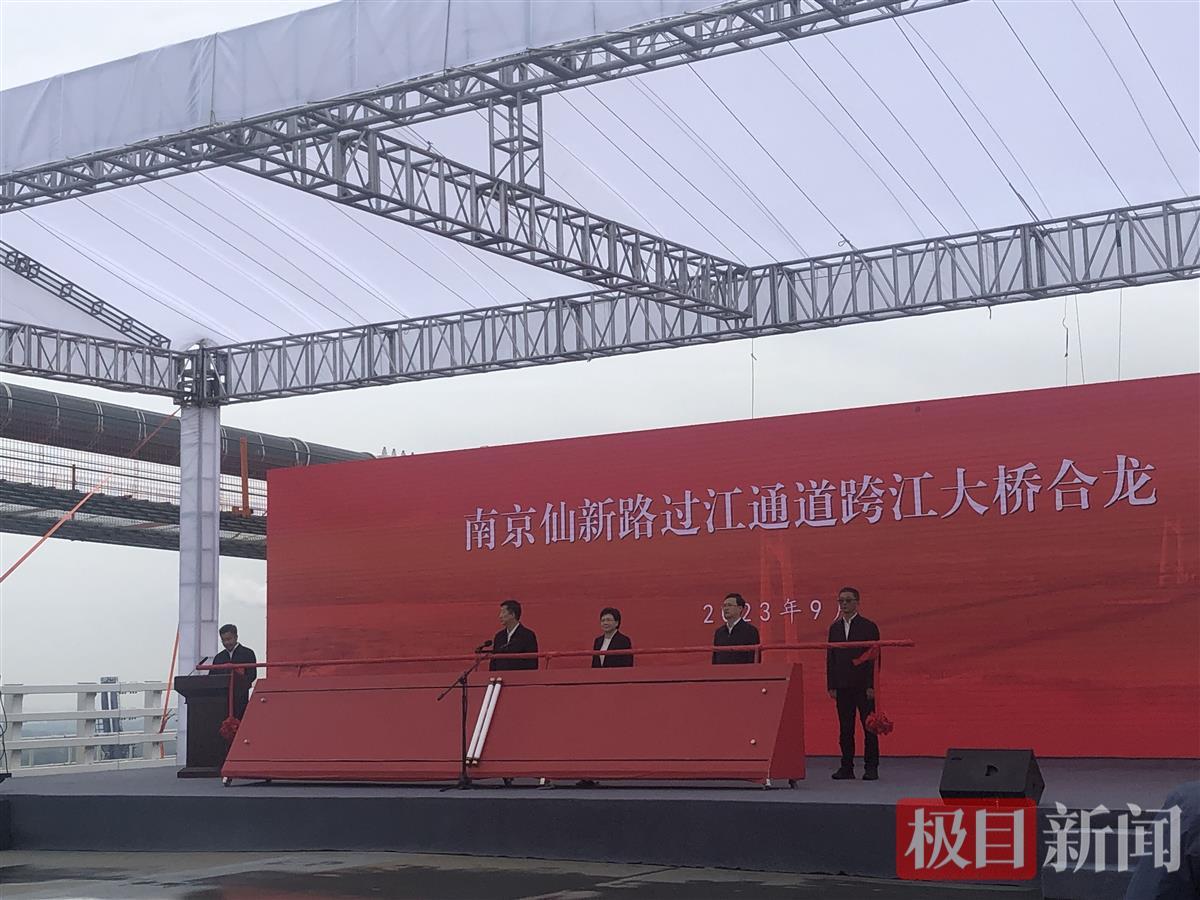 仙新路过江通道跨江大桥合龙仪式现场