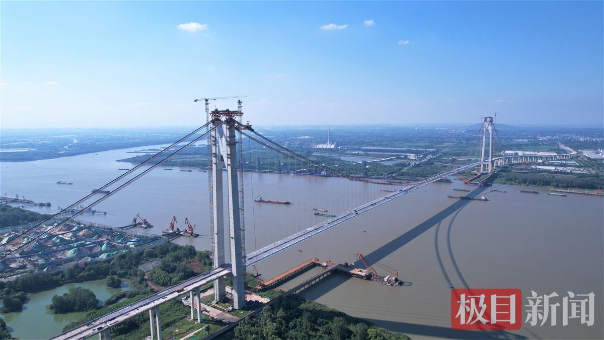 2023年,仙新路过江通道先后完成了主缆架设、乌龙山隧道贯通等重要节点。6月20日,大桥首榀钢箱梁成功吊装,此后的3个月,建设者们克服了台风影响、夏季高温、暴雨恶劣天气、建设条件复杂、长江航道封航压力大及安全防控难度高等困难,并在吊装过程对主缆和钢箱梁线形、桥塔偏位等进行实时监控,对每个吊装阶段进行分析计算,并对后续施工进行预测和指导,以最终达到设计线形。