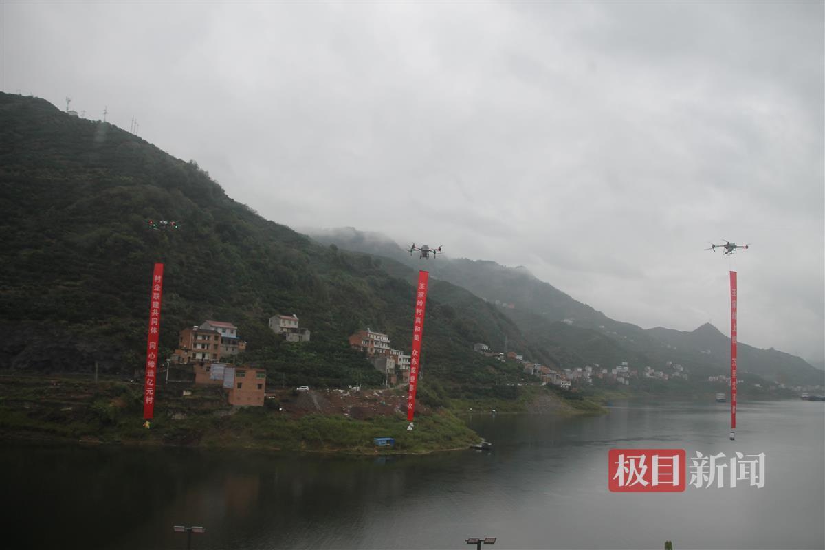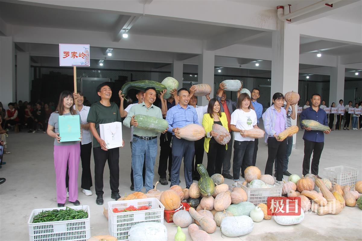在农产品展示环节,各家各户都拿出了今秋最好的收成“晒丰收”,大如磨盘的南瓜、长如手臂的冬瓜、金灿灿的苞谷、红彤彤的辣椒堆积如山,以村落为单位进行展示,互赛互评。天空中,参加竞技表演的6架植保无人机排成一排,拉出“王家岭村真和美,众志成橙喜丰收”的横幅,为丰收助兴。