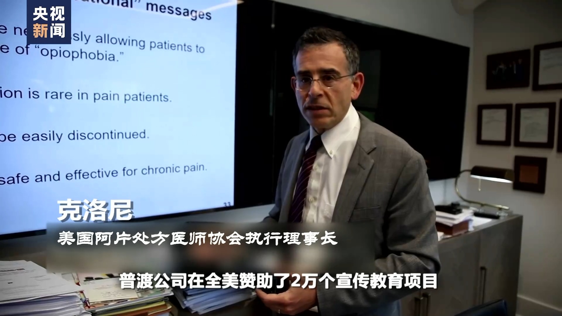 美国阿片处方医师协会执行理事长 克洛尼:奥施康定上市后的6年时间里,普渡公司在全美赞助了2万个宣传教育项目,他们向专业协会提供资金,以倡导更多地使用阿片类药物。监管医院的组织从他们那里拿钱,监管不同州的医生的组织从他们那里拿钱。从所有这些不同的方向,我们医生都被告知要多开处方,阿片类药物的制造商和经销商在10年内花费8.8亿美元,目的便是阻止更谨慎的处方,他们的花费比美国的枪支游说集团还要高8倍。