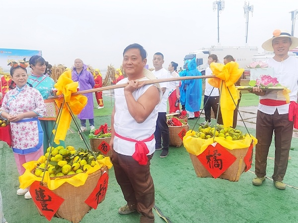 章庄铺镇的乡亲们,在喜庆的乐曲中带来了当地盛产的卷桥柑橘。柑橘产业是这个镇的支柱产业,今年种植面积6.8万亩,年产量15万吨,年产值2亿元。