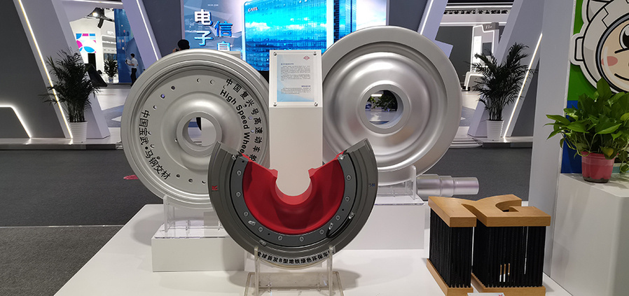 中国宝武钢铁集团有限公司展出的高铁车轮。新华社记者 胡锐 摄
