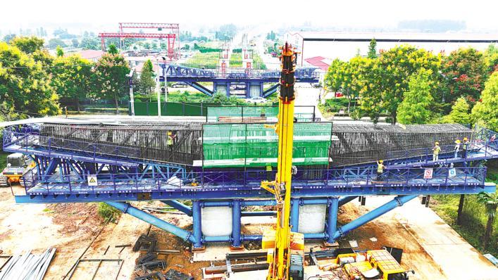 9月18日,当枝松高速公路枝江段桥墩施工现场,建设者抢抓晴好天气,正在加紧施工。当枝松高速公路全长约75公里,起于当阳、贯通枝江、接抵松滋,串联起沪蓉、沪渝和岳宜3条高速,属于民生重点工程。项目建成后将打通宜荆荆都市圈南北交通“经脉”。