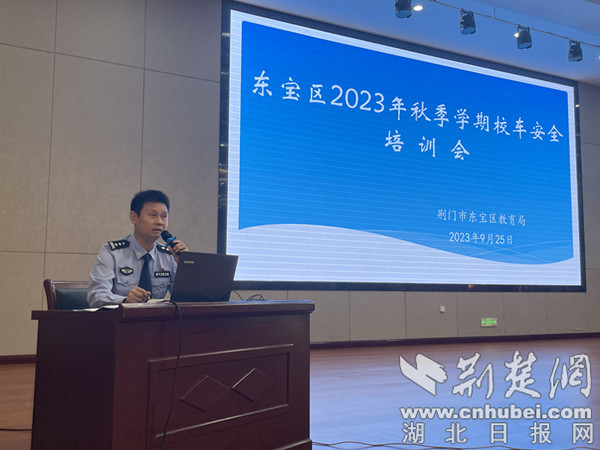 荆楚网(湖北日报网)讯(通讯员 谈媛媛)9月25日上午,荆门交警前往长宁实验学校,为荆门市学安校车公司各工作站负责人、校车驾驶员、随车照管员、各乡镇教育总支分管安全辅导员、有校车接送学生的城区学校(幼儿园)分管安全负责人开展校车安全知识培训。