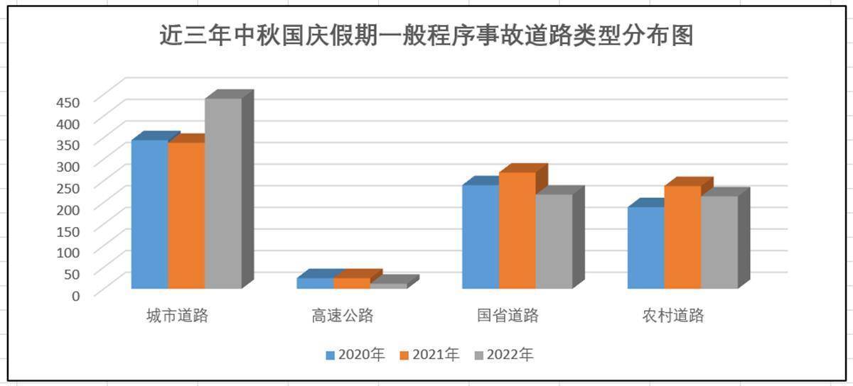 2020至2022近三年中秋国庆假期,全省分别发生一般程序交通事故798起、870起、884起。