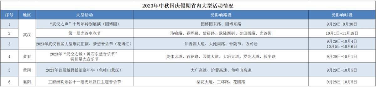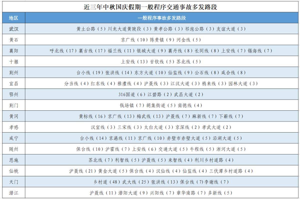 湖北日报讯(记者许旷、通讯员肖舒旋)9月26日,湖北交警发布中秋、国庆期间道路交通安全“两公布一提示”。