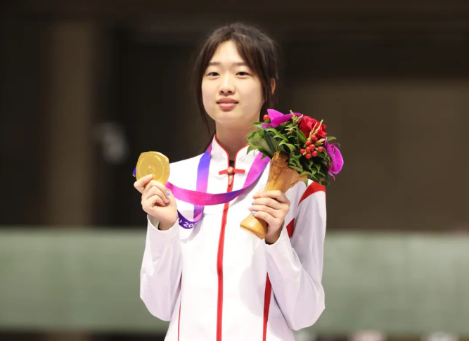 黄雨婷在射击上的天赋很快展现出来,2017年,她入选黄岩少体校射击步枪队,2020年输送至浙江省射击队,此后,她快速崛起,成为女子10米气步枪项目的领军人物。2022年射击世锦赛,刚满16岁的黄雨婷勇夺2金1银,为中国队收获了一张巴黎奥运会的门票。