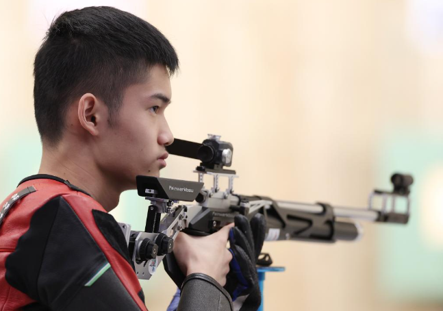对于盛李豪,用天才形容他并不为过。13岁时,父亲李湘平带他到射击俱乐部玩,第一次接触射击,他就打得有模有样。“当时我们就是想让他找到一个爱好,去了射击俱乐部他就很喜欢,玩得也比较嗨。”李湘平在接受记者采访时说,“在射击俱乐部练了一个暑假后,俱乐部老板跟我们说,这孩子有天赋。我们当时也没太相信,毕竟之前对射击不了解。后来我们与盛李豪又聊了聊,他说很喜欢。那么,就继续练吧。说实话,我们当时根本没想到他会走上这条道路的。”