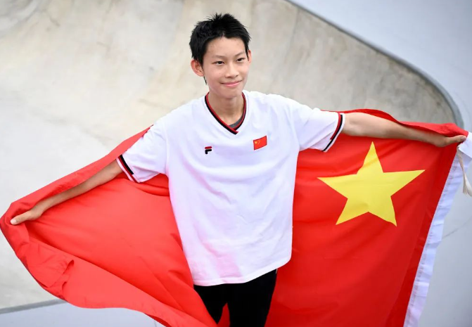 15岁少年陈烨滑板男子碗池项目摘金:速度和腾空的感觉都很吸引我
