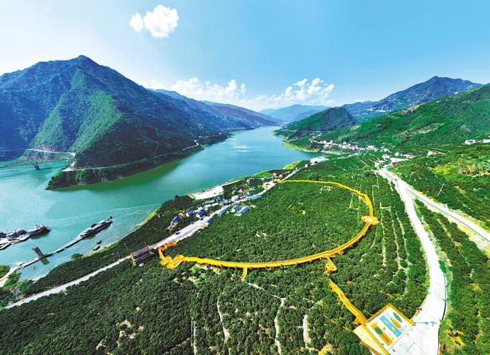 9月16日,秭归县归州镇彭家坡村新建的脐橙园立体观光廊道与吒溪河的秀美山水相映成画。近年来,秭归县建设“最美吒溪河”乡村振兴示范区,在长江支流吒溪河沿线,充分利用脐橙主导产业及山水资源优势,带动乡村旅游,助力乡村振兴。