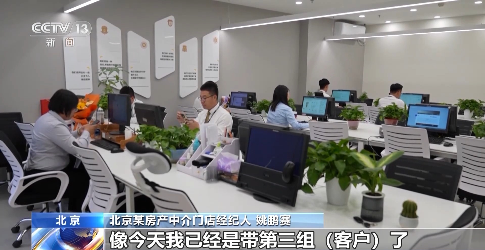 北京某房产中介门店经纪人 姚鹏赛:出政策之前我可能带客户的数量一周差不多下来有三四组,出来政策以后一周下来能有个10来组客户,像今天我已经是带第三组客户了。