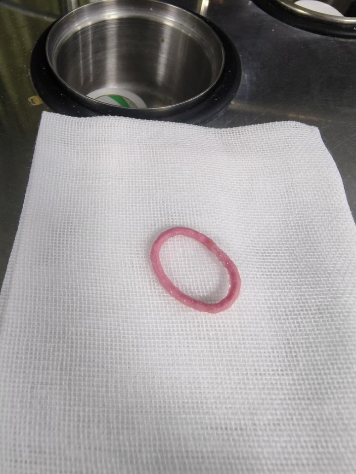 所谓的“粉红色虫子”居然小朋友扎头发的橡皮筋。外婆这才回忆起来,今晚洗头之前,宝宝拿着橡皮筋在手里玩,可能是边揉边吸,就塞到鼻孔里了。