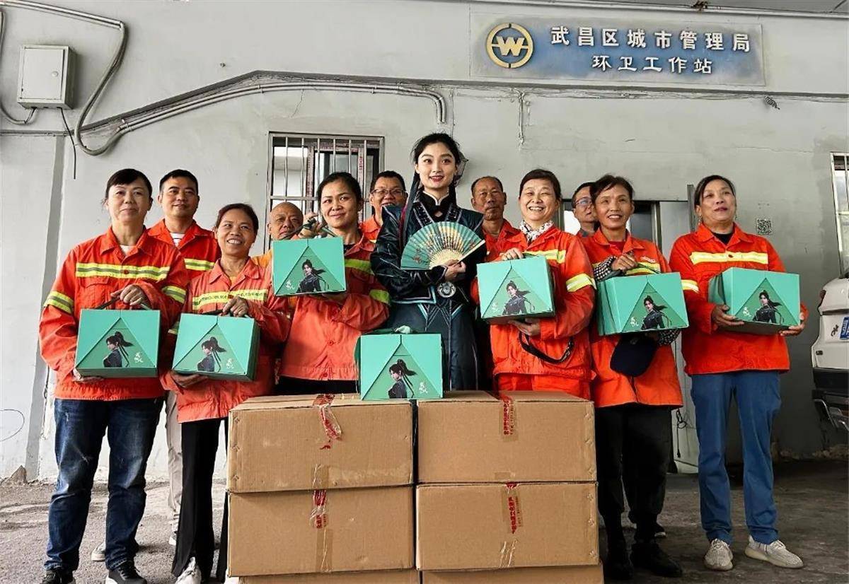 中秋节前,在“武昌文旅推荐官”武畅儿的带领下,由武汉市城市管理执法委员会、海心数字科技公司有关领导组成的慰问组走上街头,带着通过省慈善总会捐赠的定制款联名月饼,为城市美容师们送上节日的祝福。