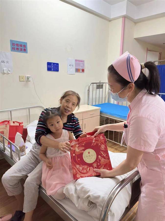 9月28日,在“医路同行”慈善医疗服务项目的组织下,湖北省人民医院、湖北省妇幼保健院、湖北省肿瘤医院、武汉儿童医院、武汉市第三医院的医护人员和医务社工,带着良品铺子捐赠的月饼礼盒进入病房,看望在院治疗的困难患者,为他们送去中秋祝福,鼓励他们要勇敢面对生活、早日战胜病魔。