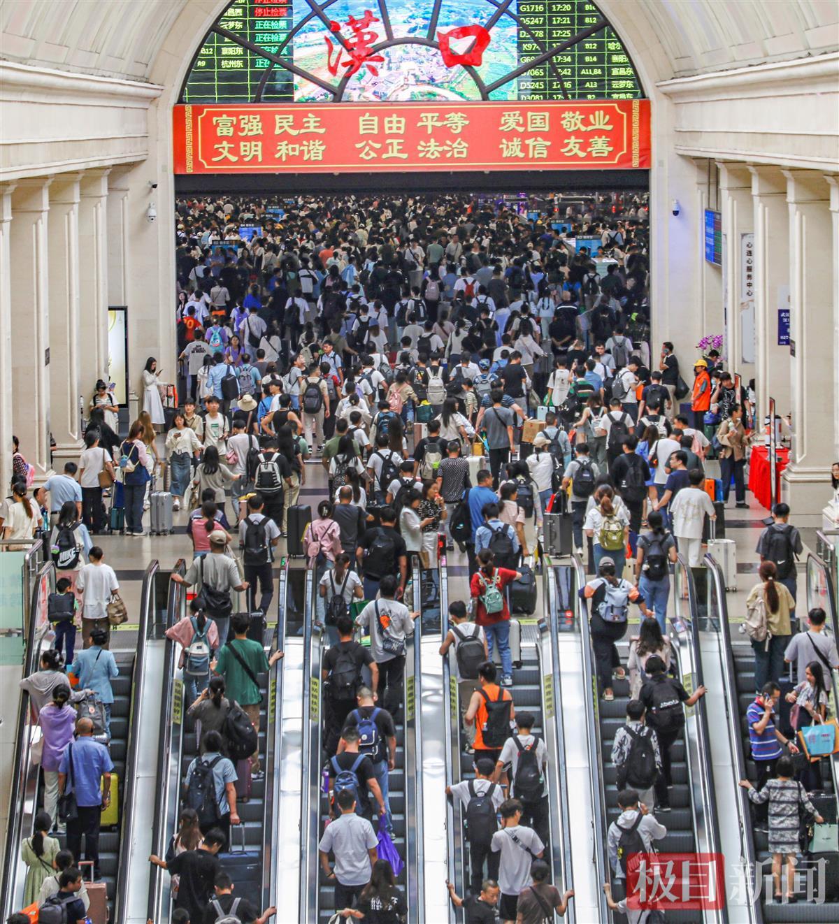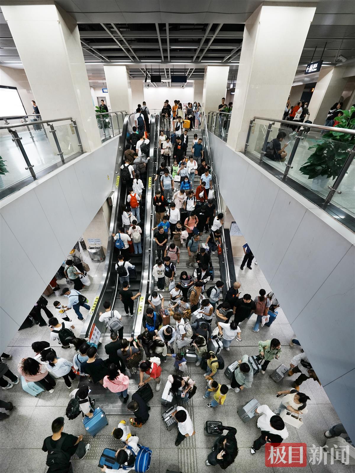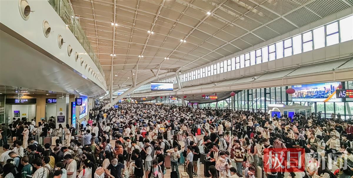 这也许是史上最火爆的黄金周,人们的出游热情空前高涨。极目新闻记者从交通窗口部门了解到,假期刚刚开始,武汉铁路、武汉地铁均迎来井喷的客流,破纪录成为这一天的“关键词”。为了最大限度满足旅客出行需求,交通部门根据售票大数据科学安排运力,高峰时段,武汉站平均每2分钟发送一趟列车,高铁密度堪比地铁。